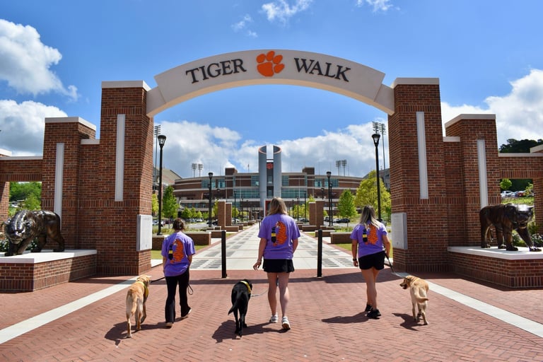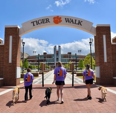 Fundraising events are crucial to the club's success. Clemson-Canine Companions works to alleviate the cost of puppy raising for college students to make the experience more accessible. Each semester, our club hosts public fundraising events, such as our 5K Wag & Walk. The money we raise helps support our puppy raisers in covering the costs of our dogs and their training.