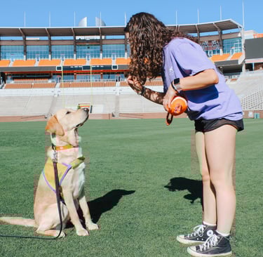 Our puppy sitter program was created to address the challenge of raising a dog amidst classes and extracurriculars. Puppy sitters are trained to take care of our pups whenever a puppy raiser needs assistance. Participating in the puppy sitting program is also a great way to prepare for puppy raising!