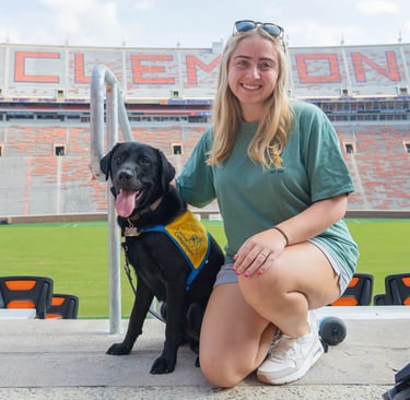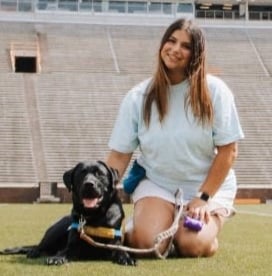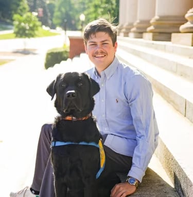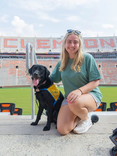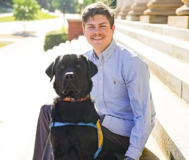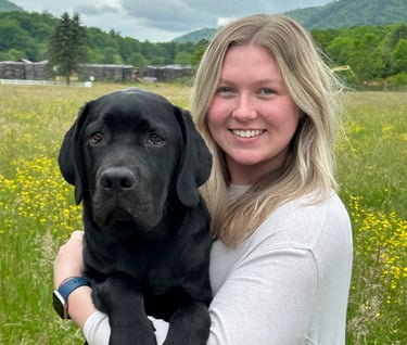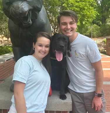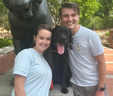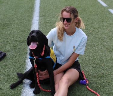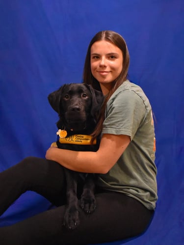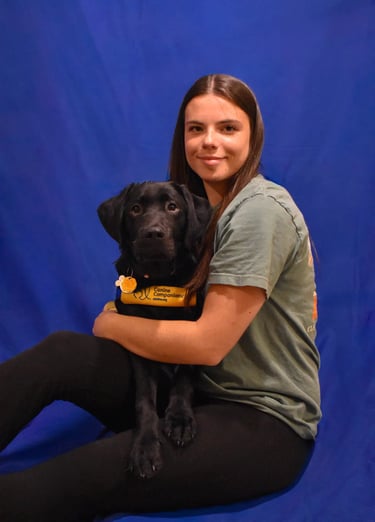 Baxter is a large black lab who was co-raised by Maddie Barrett and Anderson Reed. He graduated as a service dog with a facilitator in May 2024. Baxter now assists his handler by retrieving dropped items, opening doors, and guiding his partner in a wheelchair!
