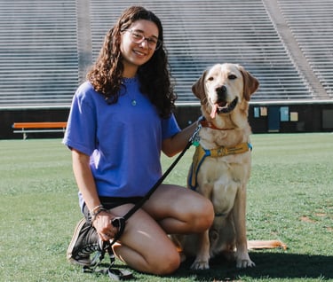 Ansel is a lab golden mix and was raised by Katie Graziano. He matriculated in February 2025 and is now enjoying the pet life after a change in career. Ansel's favorite things to do are going on hikes and playing with his friends.