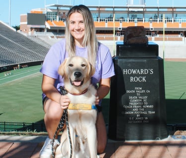 Harris is the club's second golden lab and was raised by Bianca Bacany. He matriculated in November 2024 and discovered that he was better suited for a career change to therapy dog. Harris now volunteers in hospitals with his handler, Bianca, as a certified therapy dog, providing support and comfort to others.