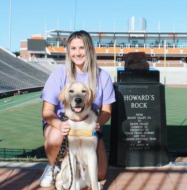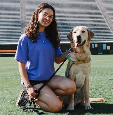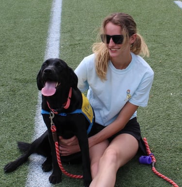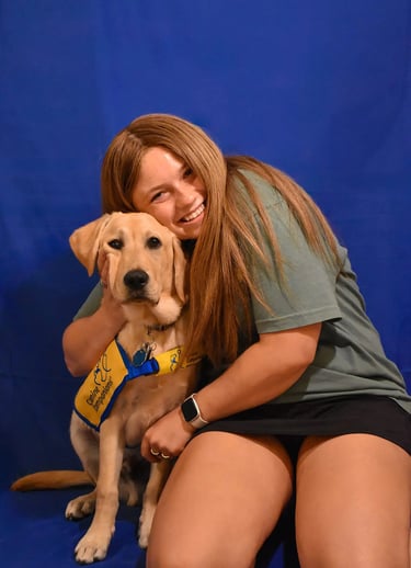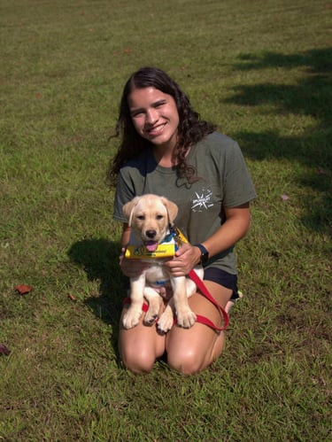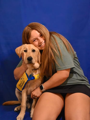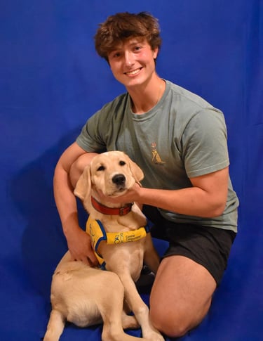 Niles was the club's first yellow lab and was raised by Lexi Jajack-Valverde. He is now working as a successor service dog for his handler. By helping retrieve his handler's phone and opening doors, Niles and his partner make the best team!
