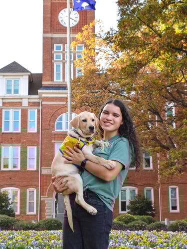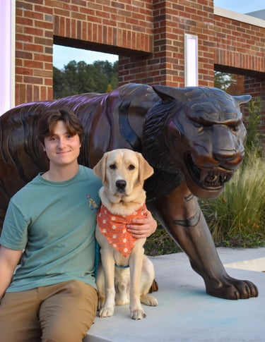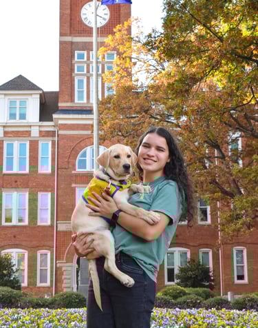 Ansel is a lab golden mix and was raised by Katie Graziano. He matriculated in February 2025 and is now enjoying the pet life after a change in career. Ansel's favorite things to do are going on hikes and playing with his friends.